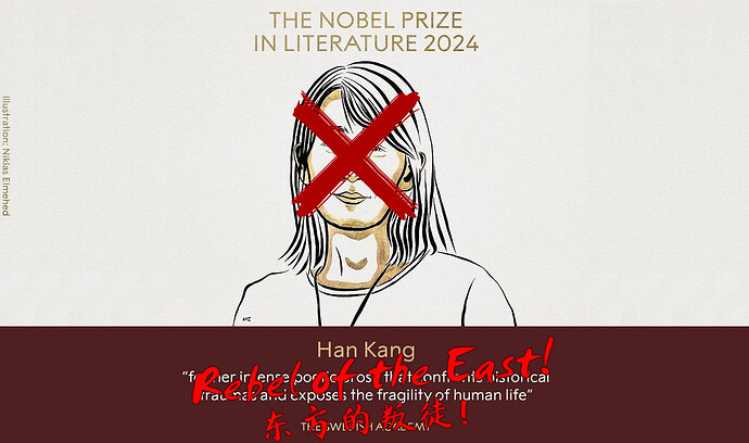 On October 10, 2024, the Nobel Prize in Literature was announced to be awarded to South Korea’s so-called “feminist” writer Han Jiang. According to the Nobel Prize official website, Han Jiang was awarded for “confronting historical trauma and invisible rules, revealing the fragility of human life in every work.” In these seemingly abstract words, the usual standards for Nobel awards are hidden — it “is a honor reserved for Western writers and Eastern traitors” [1]. Han Jiang, as the bourgeois writer Sartre, who refused to accept the Nobel Prize, said, is a genuine “Eastern traitor.”